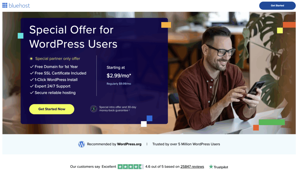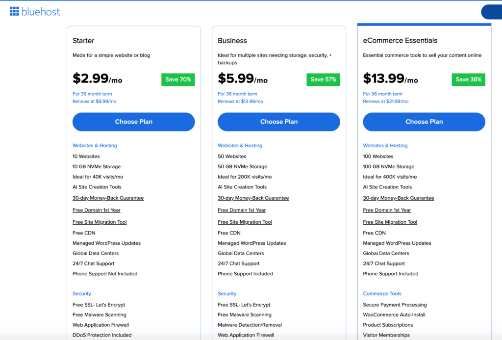 Disclosure: I am an affiliate for Bluehost, and will receive a commission if you sign up through my referral link. This is at no additional cost to you, and you will get great pricing and a free domain name through my link.